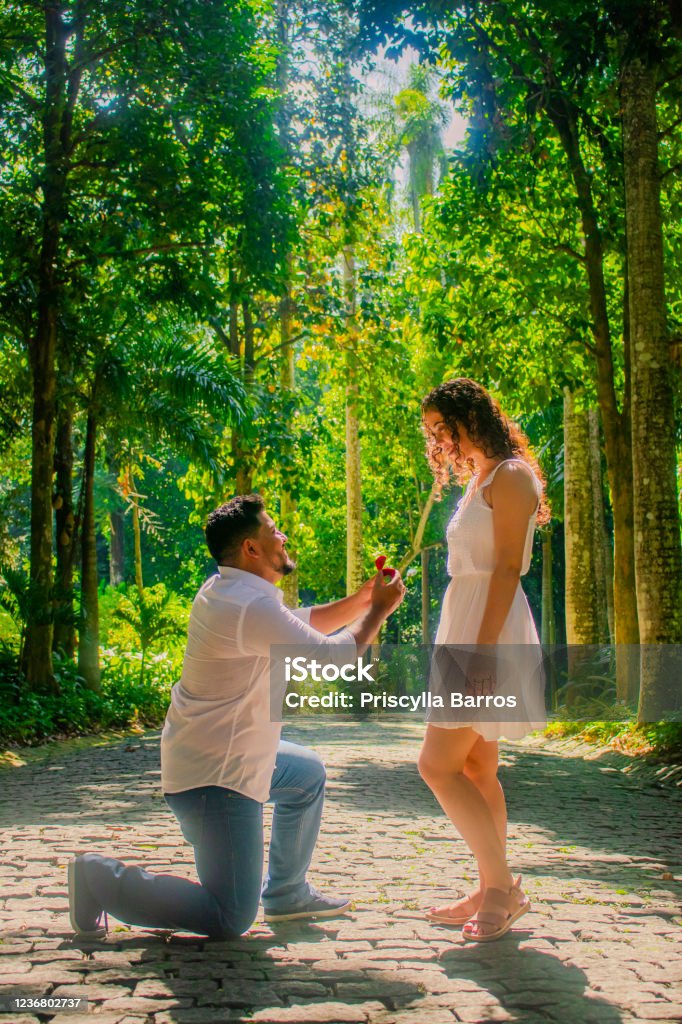 ひざまずく男との自然の中でのプロポーズ - 婚約のストックフォトや画像を多数ご用意 - 婚約, 婚約指輪, 2人 - iStock。