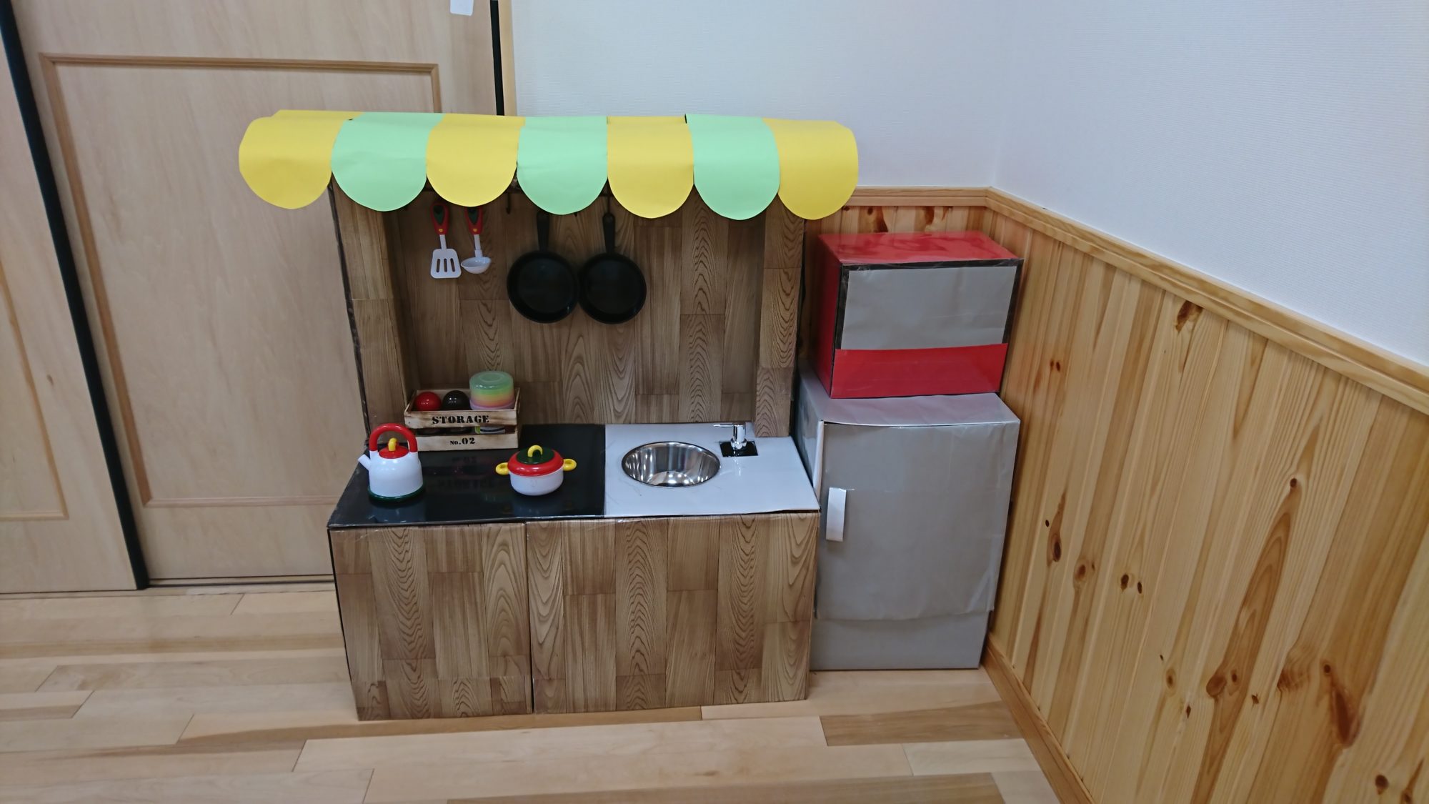 手作りダンボールままごとキッチン - ほしーじょの育てる×働く×楽するブログ。