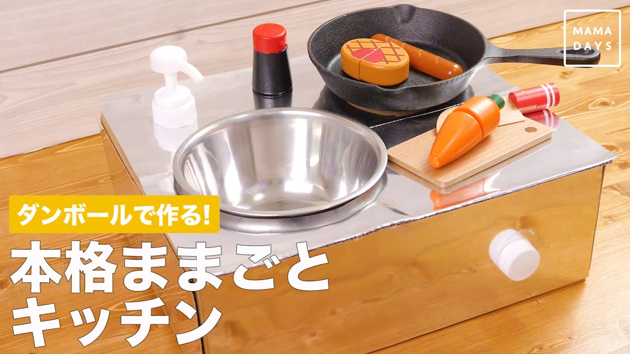 100均一×段ボールでDIY おままごとキッチン手作りしました! - YouTube。