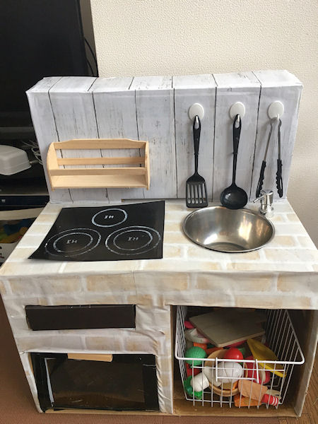 ままごとキッチンの作り方!ダンボールをおしゃれにアレンジヨムーノ。