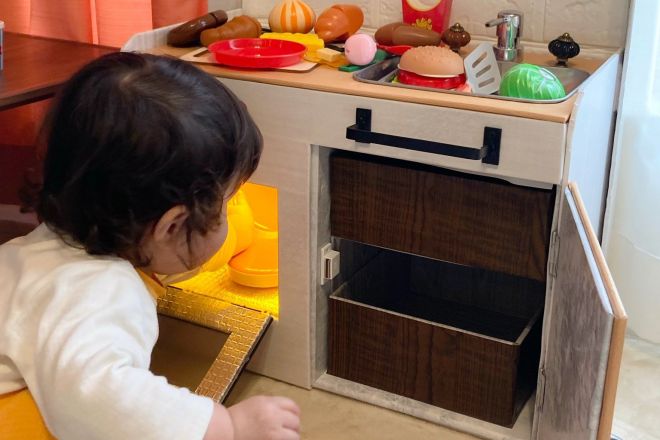 段ボールに見えない!本格手作りままごとキッチンがクオリティ高すぎ。