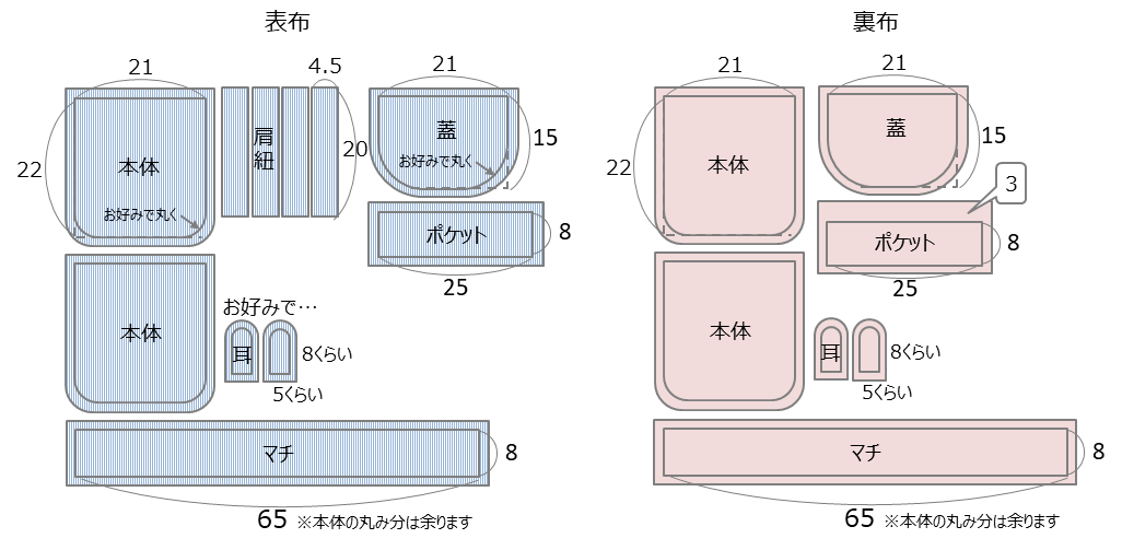 パターン型紙親子の リュックサック簡単 実寸大 実物大 作り方 レシピ トートバッグ バッグ かばん 帽子 ポーチ 小物。