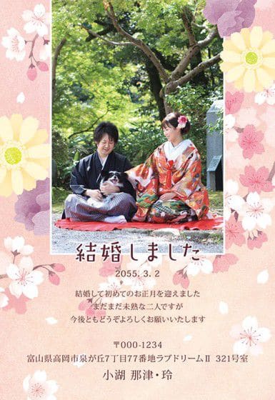 結婚報告_和風_17151のはがき・ポストカード無料デザインテンプレート印刷のラクスル。