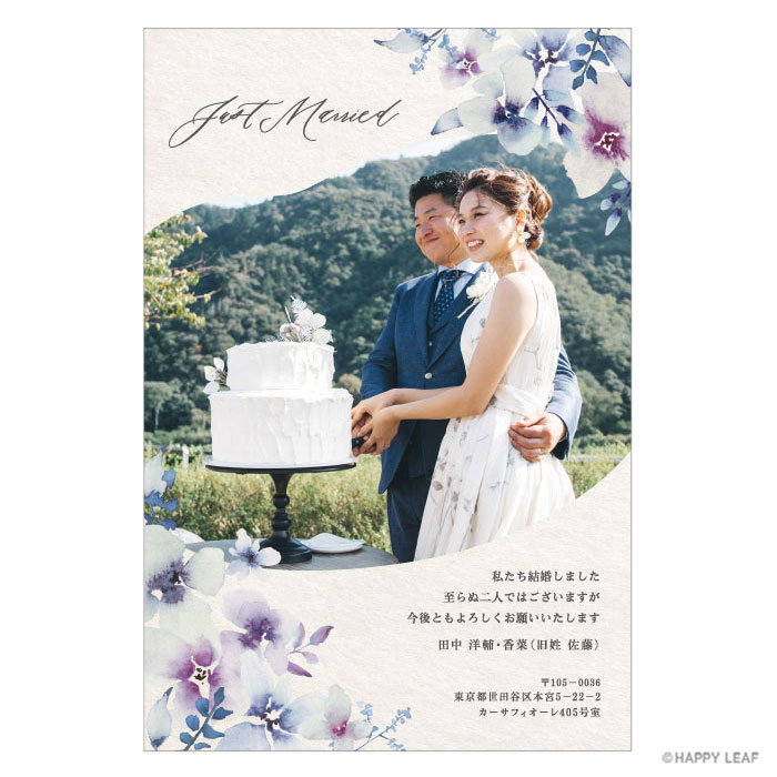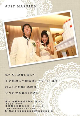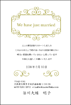 結婚報告はがき印刷:写真なしデザイン専門店 アルファプリントサービス。