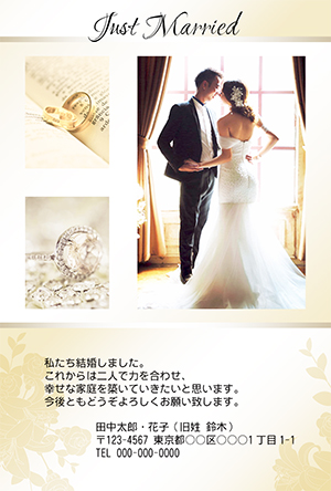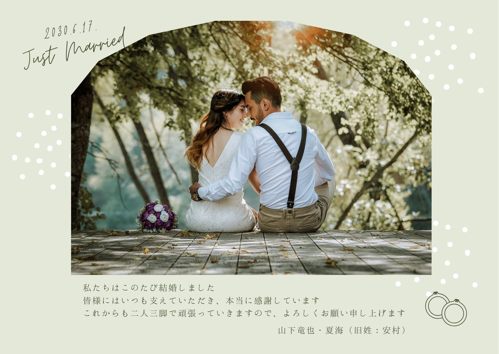 結婚報告はがき 無料テンプレート Andante 商用利用可和風 洋風 フォトフレーム テンプレート 文例。