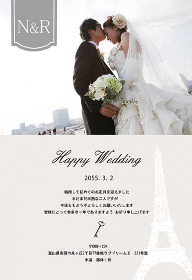 結婚報告はがき写真1枚用テンプレート 電脳印刷サービス。