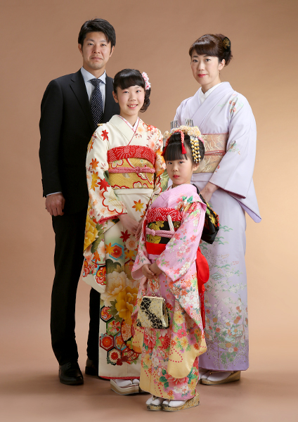 着物を着て家族撮影 写真館七五三の写真撮影大阪・京都・四日市・奈良・兵庫の写真スタジオなら「ファーストステージ」。