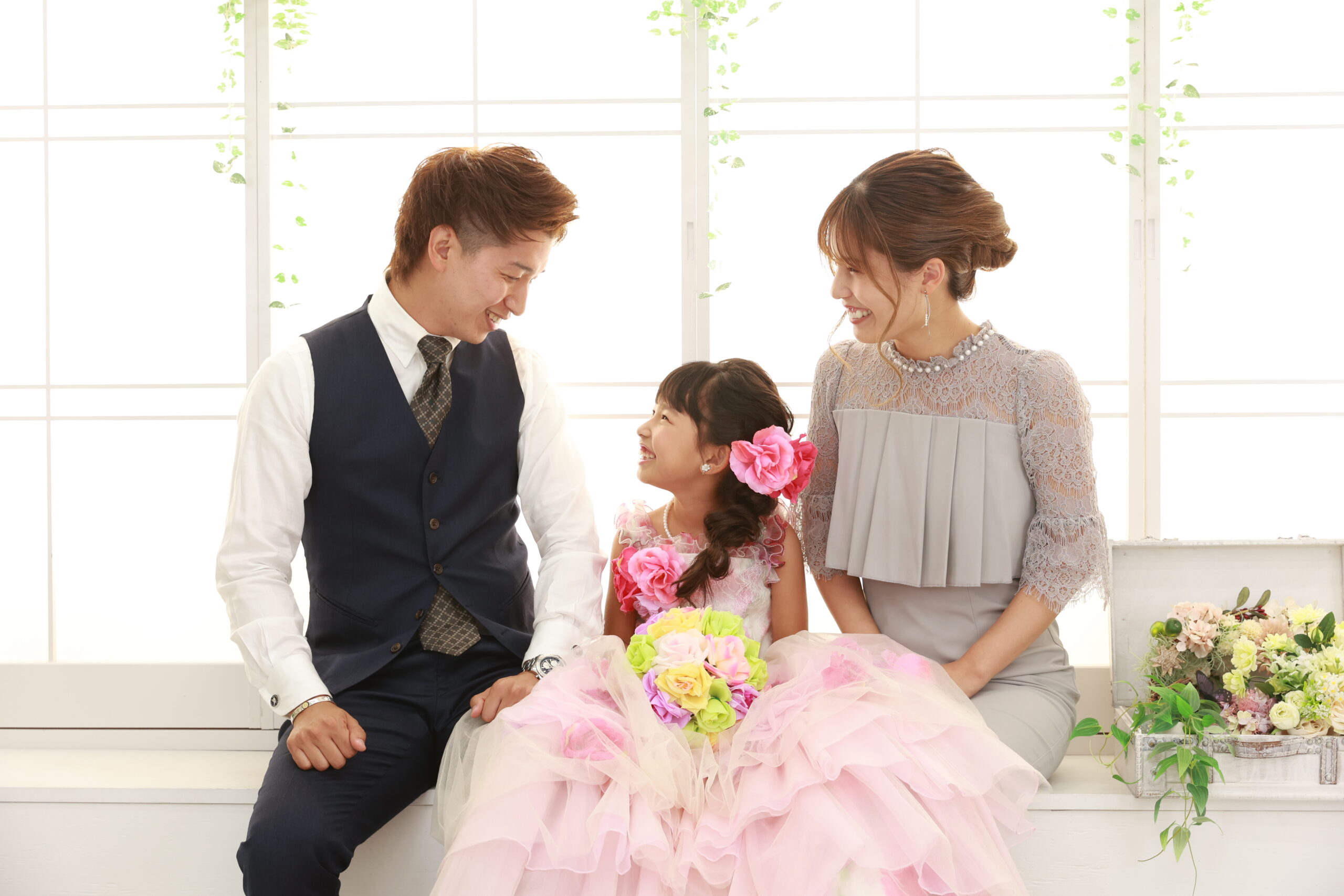 七五三の家族写真はスタジオ撮影がおすすめ!ママパパにおすすめの服装は?こども写真館スタジオアリス写真スタジオ・フォトスタジオ。