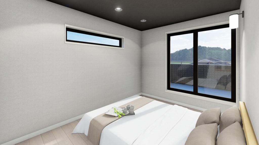 ファミクロ&寝室 ファミリークローゼットを併設した、収納力がある主寝室。 主寝室の窓からは緑を眺めることができ、勾配天井によって広がりも感じられます。 こだわりのカーペット敷きのファミリークローゼットも素敵です。 < 6月・7月EVENT > ○ 平屋2棟同時完成見。
