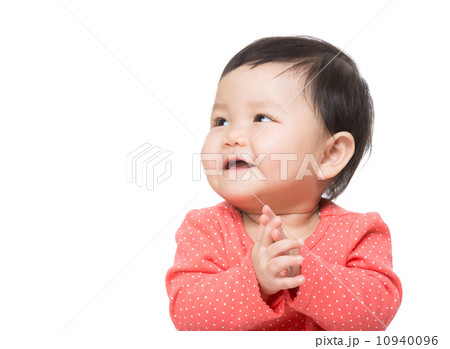 赤ちゃん 白バック 日本人 笑顔1690089 の写真素材 - アフロ。