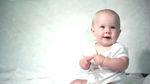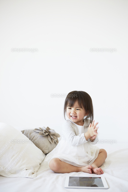 ベッドの上のダブレットと拍手する赤ちゃん 10179014736 の写真・イラスト素材アマナイメージズ。