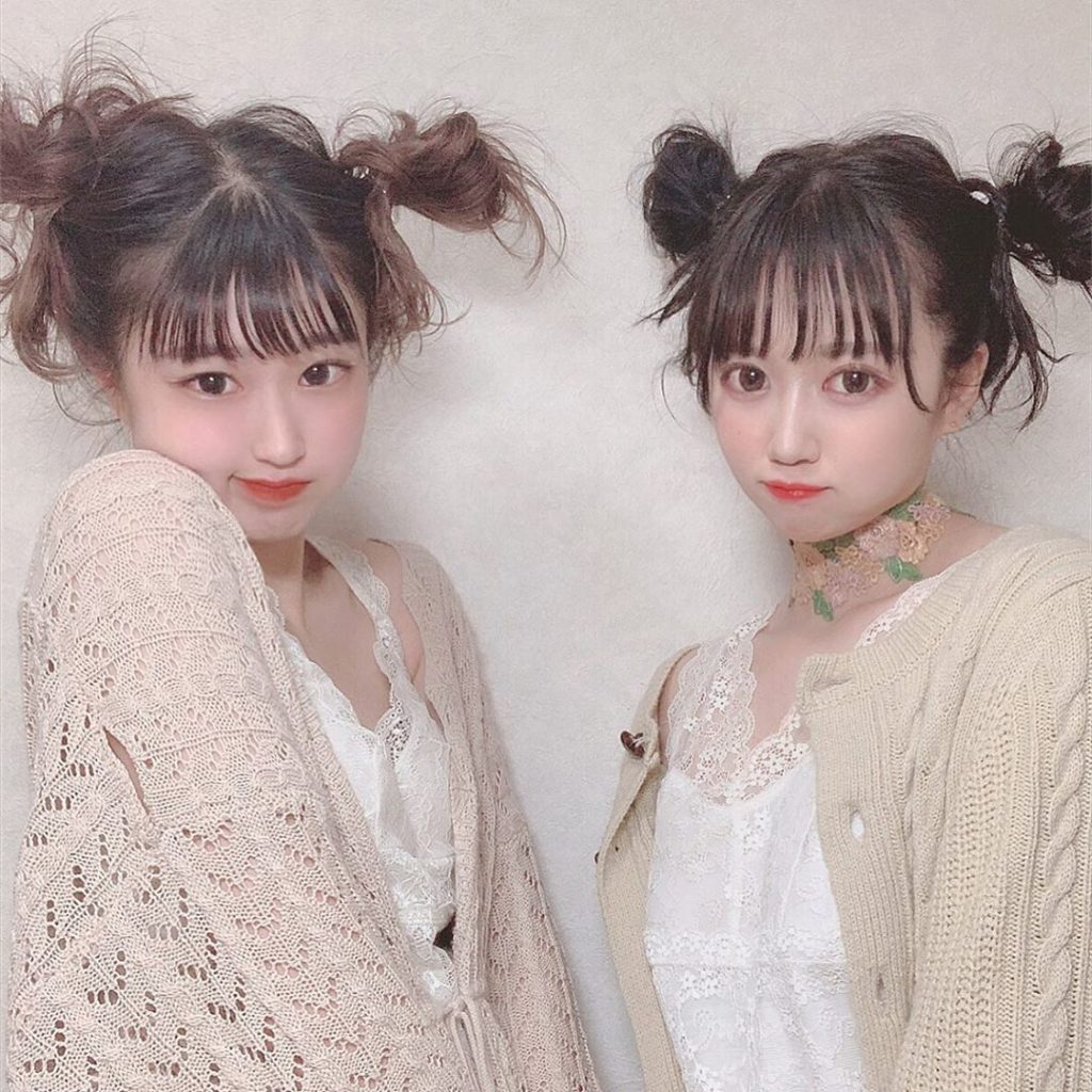 ふたば ヘアアレンジ ハーフツイン お団子TikTok。