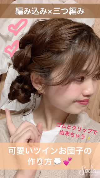 ヘアアレンジ 15分で出来る簡単ツインお団子ヘア♡ ヘアメイク動画ヘアセット。
