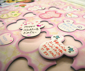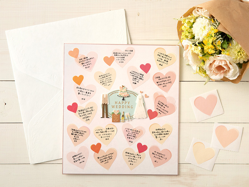 ハートでお祝いムードが高まる!結婚式に贈る色紙のアレンジ色紙の書き方色紙のデザインや寄せ書きのアイデア、デコレーションなら。