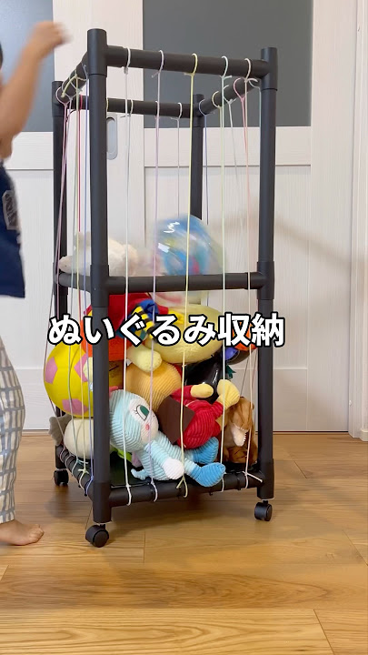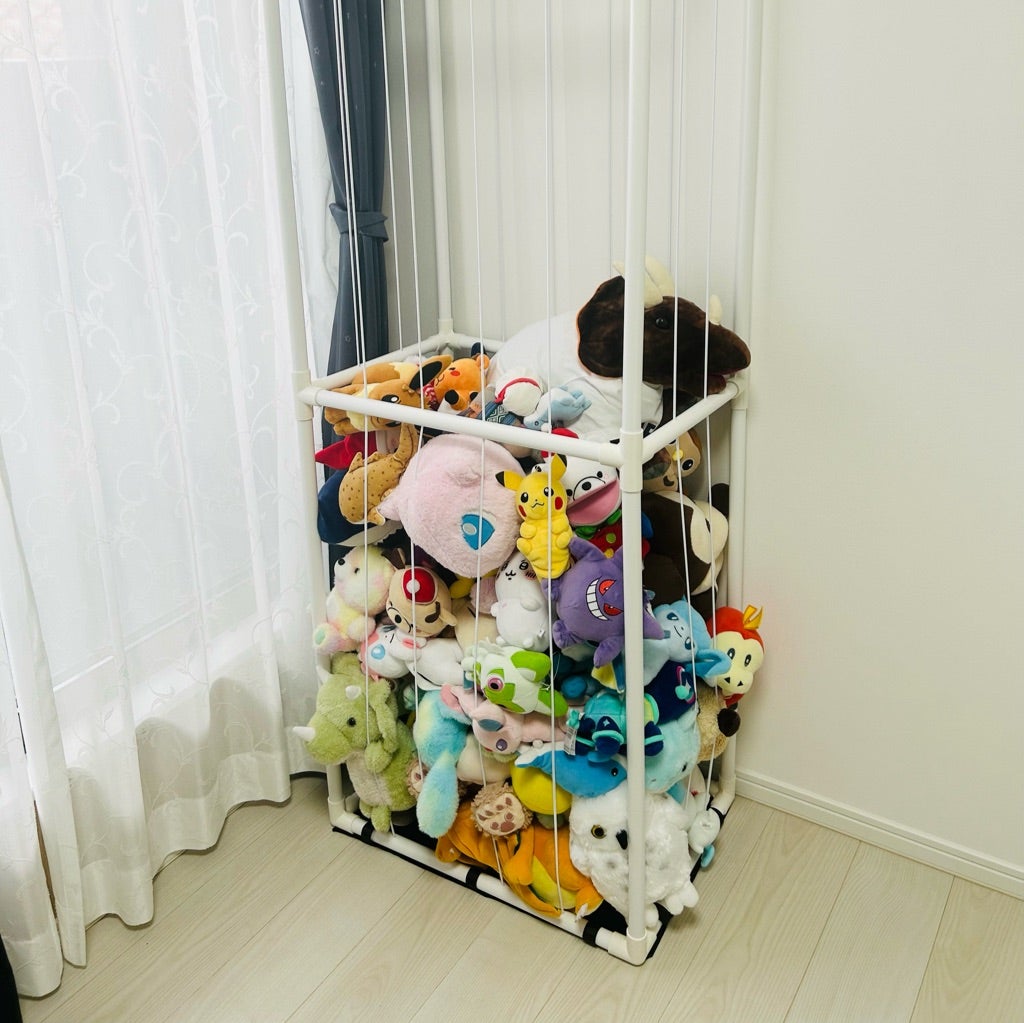 海外風の省スペースぬいぐるみ収納 DIYアイデア。