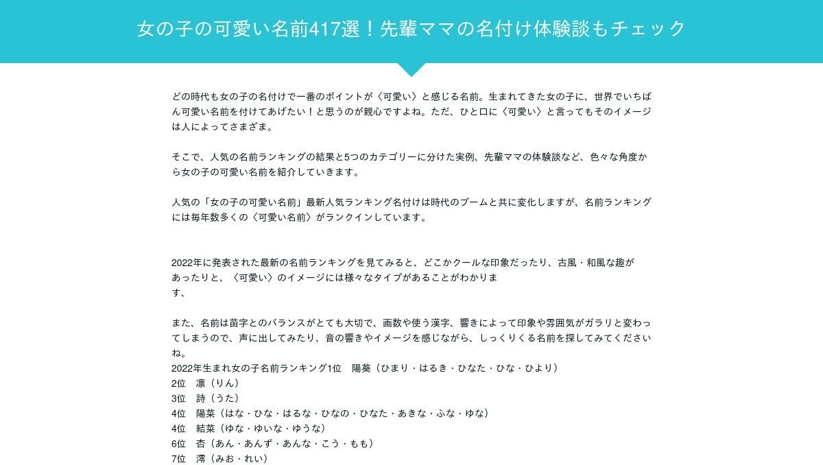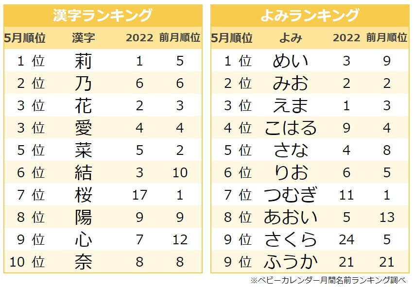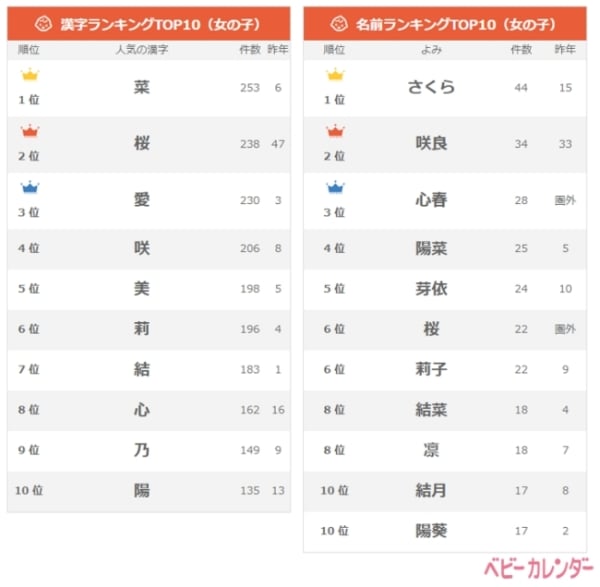 2021年上半期 人気の名前ランキングTOP20!今女の子に最も人気の名前は? ベビーカレンダ。