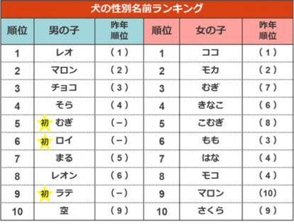 第18回 犬の名前ランキング2022発表!アニコム損害保険株式会社のプレスリリース。