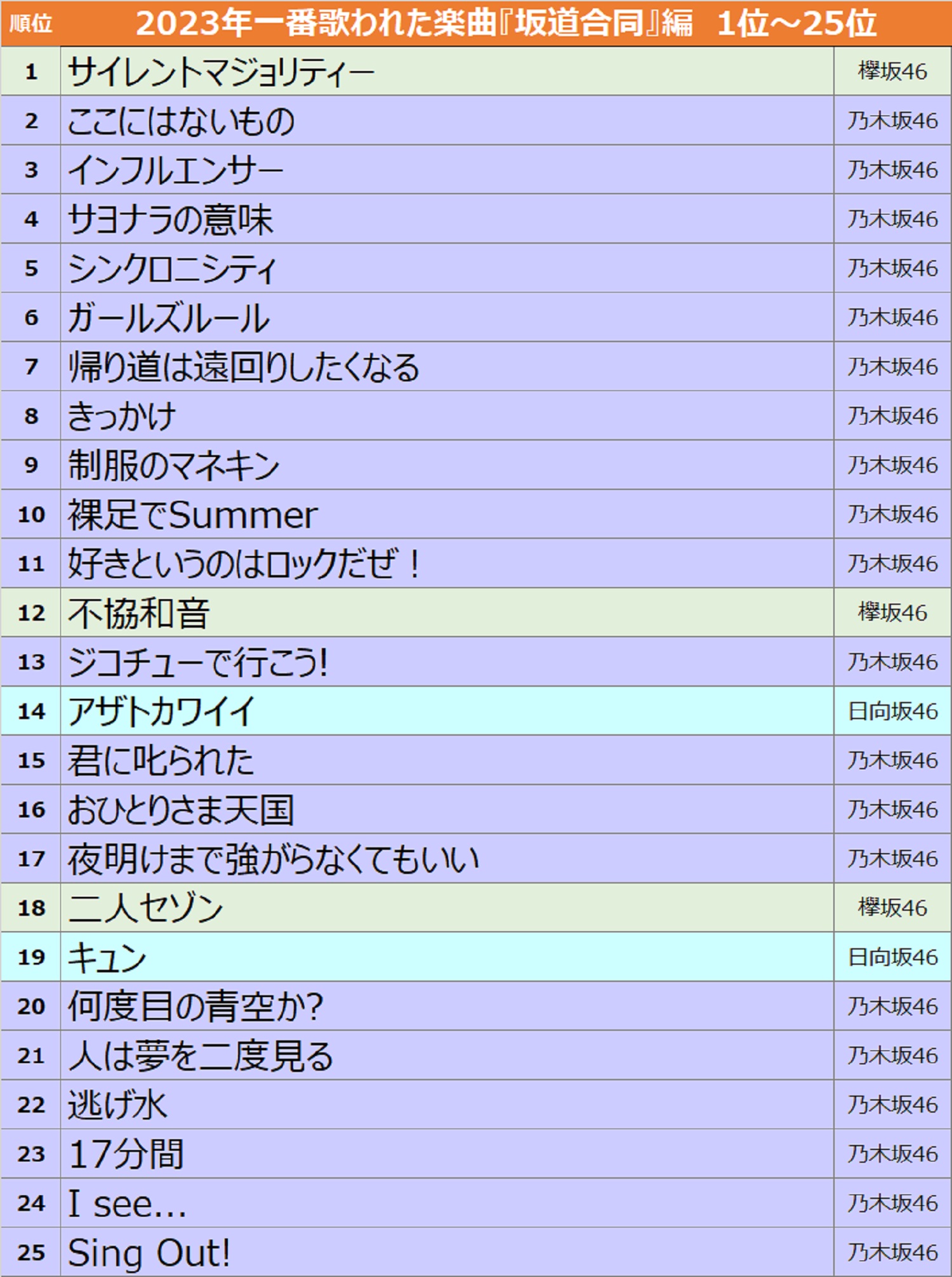 乃木坂、櫻坂、日向坂 坂道合同で一番歌われた曲ランキング2023!アニメージュプラス - アニメ・声優・特撮・漫画のニュース発信。