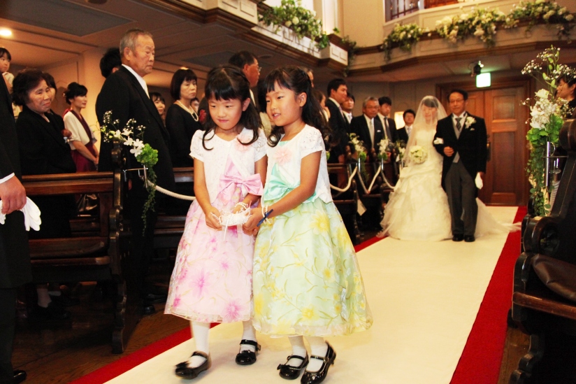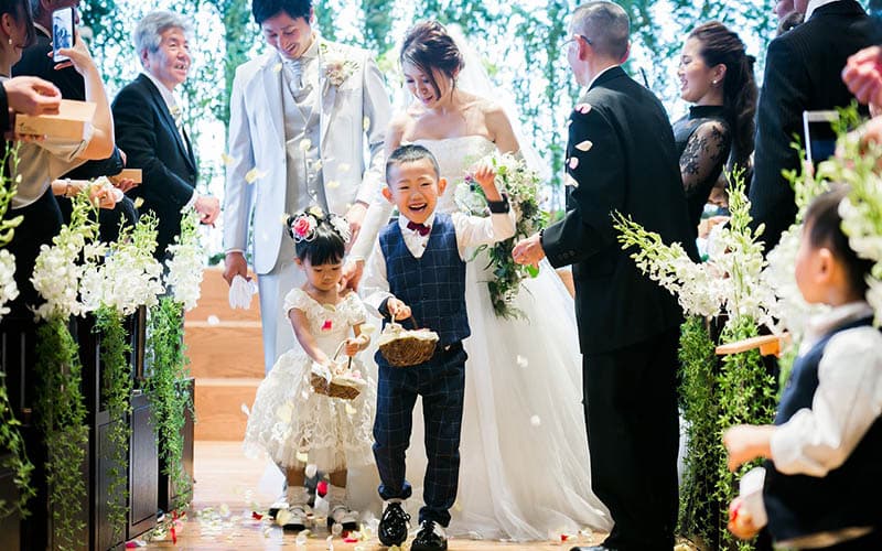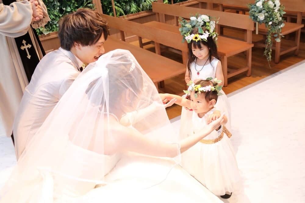 結婚式での子供の演出は? 大人も笑顔になるリラックスパーティ公式 南蔵王・聖ペトロ教会福山市のチャペル結婚式場。