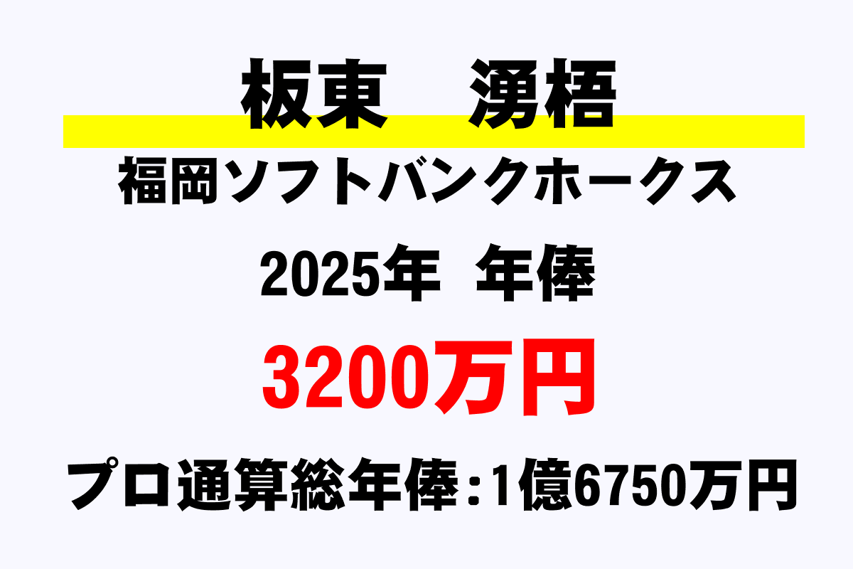 板東 湧梧 ソフトバンク の年俸・年収推移 最高・平均・通算 年収ガイド。