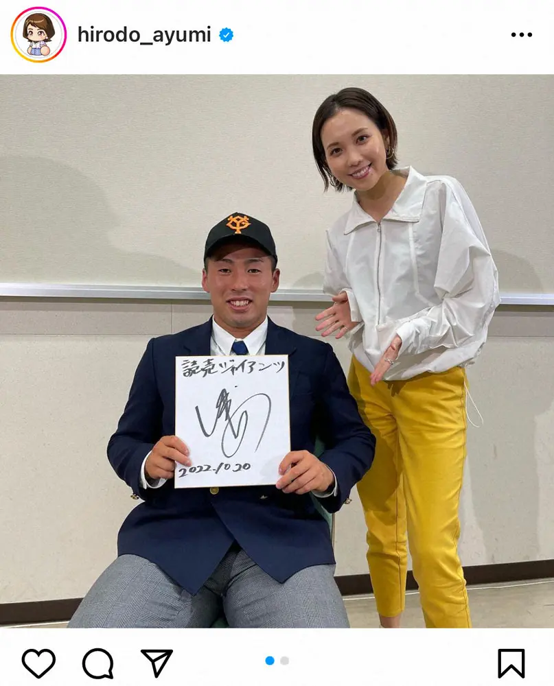 ヒロド歩美アナ、巨人ドラ1浅野の“サイン1号”ゲット「大切にします」 サインは「2日前に考えたそう」 - スポニチ Sponichi Annex 芸能。