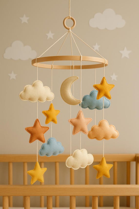 ベビーモバイル ベビーベッド用赤ちゃん育児用モバイルハンドメイド フェルト 海 動物 モバイル ベビーベッド 赤ちゃん 手作りフェルトの ベビーモビール:カラフルな空の子供部屋飾り - Etsy 日本。