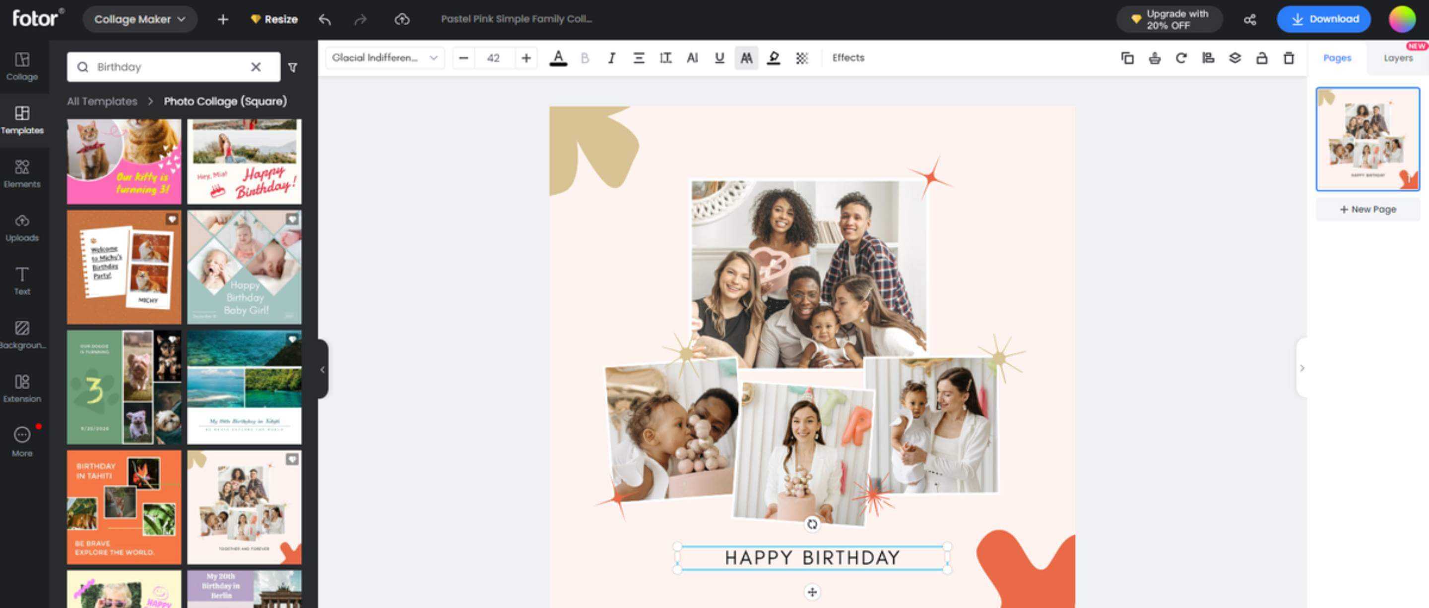 お誕生日のコラージュを無料でオンラインで作成するサイトFotor。