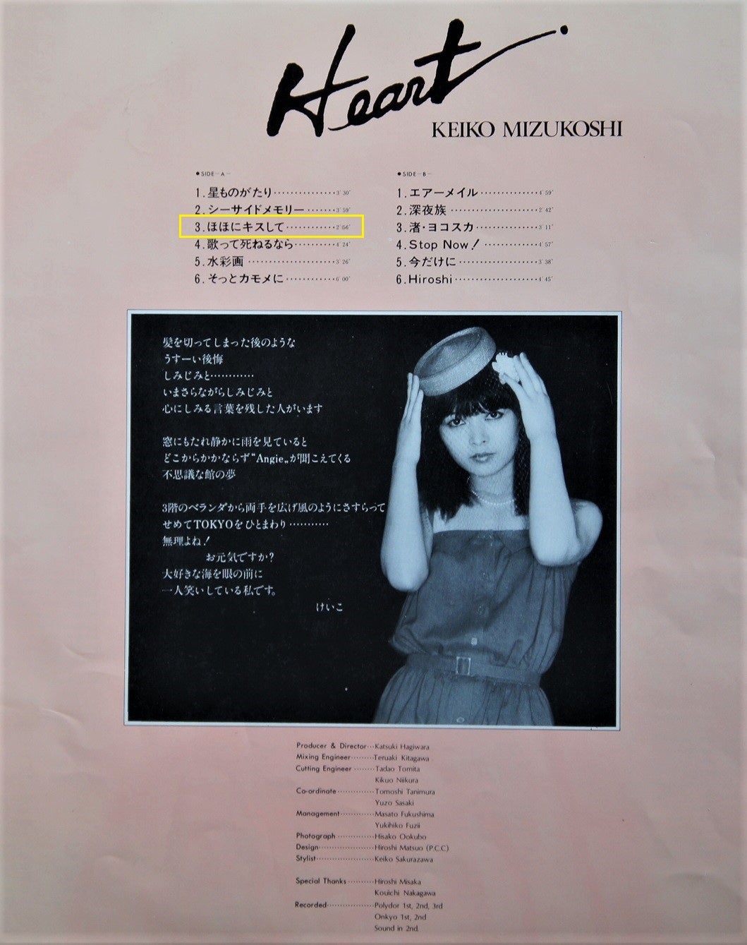 ほほにキスして 水越けいこ」 - オリコン33位を記録! 1979年に発売されたヒット曲Super源さんの音楽ブログ。