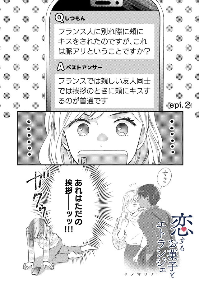 帰り際、ジローがあみの頬にキス! 深い意味のない挨拶だと、あみは自分に言い聞かせるが恋するお菓子とエトランジェ③ダ・ヴィンチWeb。