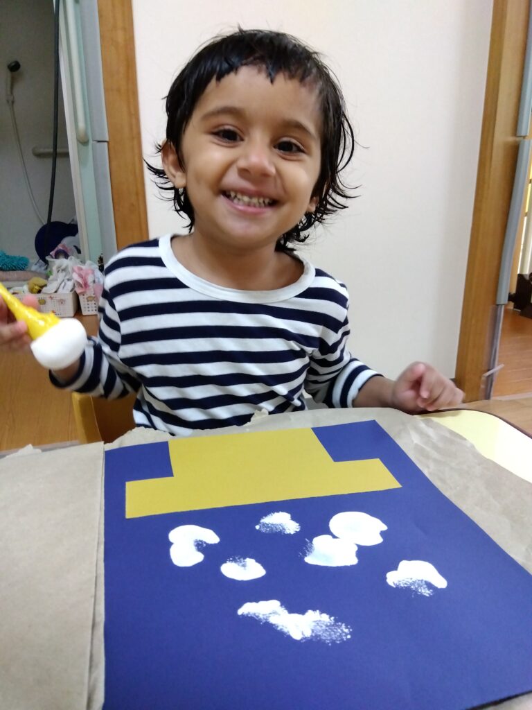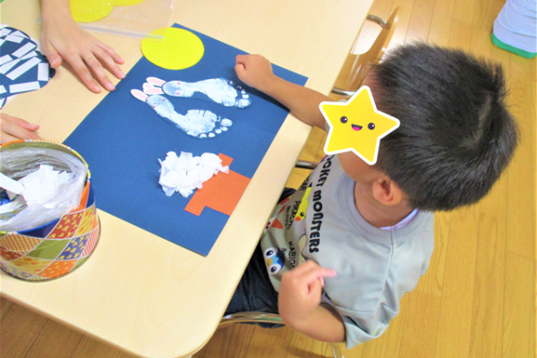 のりでぺたぺた!お月見製作🌕 2歳あめ組- 美園くじらこども園。