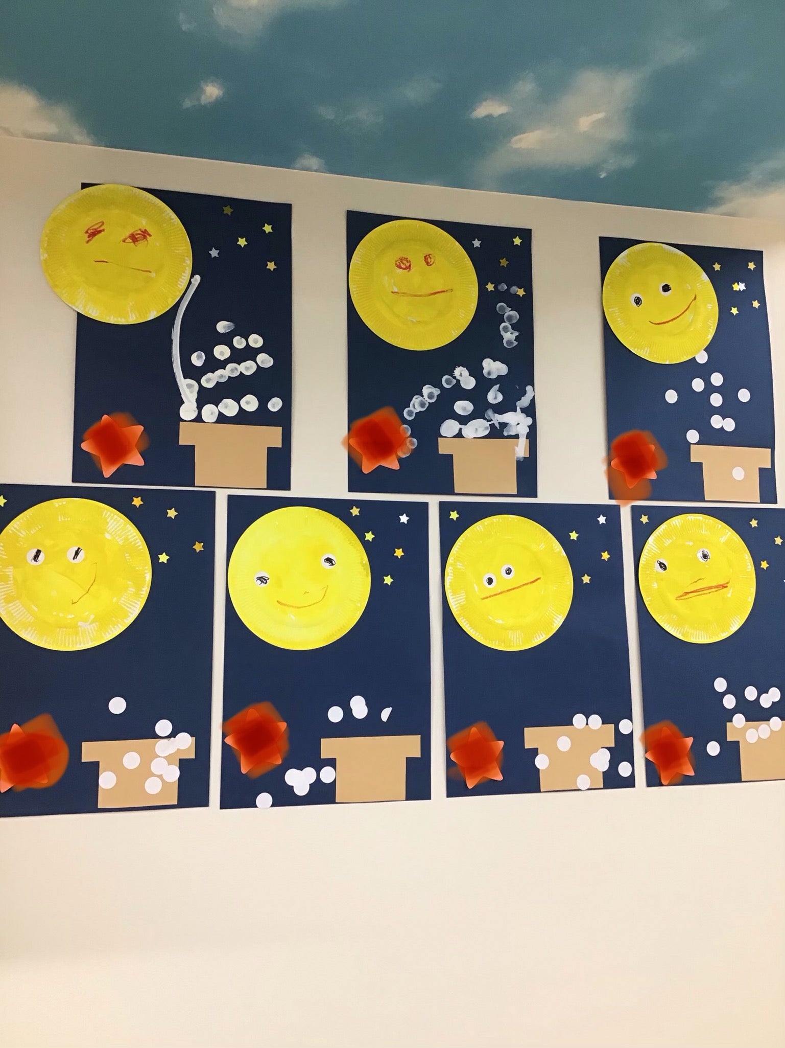 お月見製作 2歳児・3歳児から◎お月様と夜空のつるし飾り。