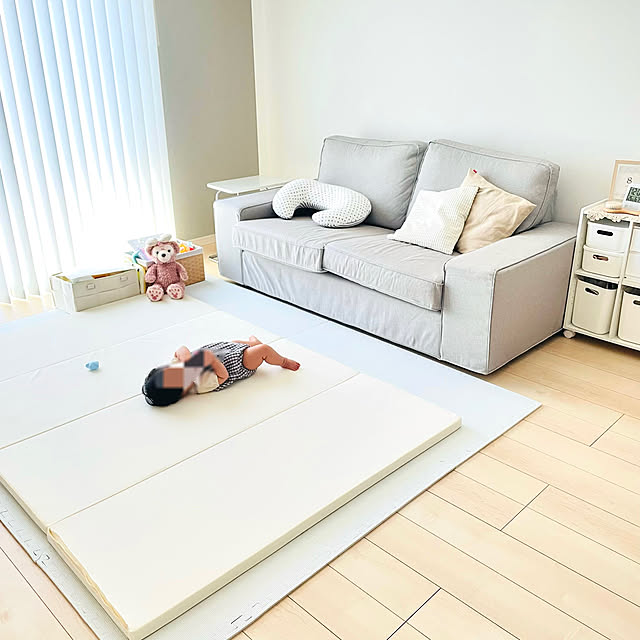 インテリアになじむプレイマット🤍 @stone_myhome赤ちゃんのいる生活赤ちゃんのいる暮らしこどものいる暮らしリビングルーム 女の子ママ男の子ママ 新米ママ 新米パパ 男の子ベビー 女の子ベビー ママリ ベビフル ママカメラ ママスタイル 子育て 子育てぐらむ。