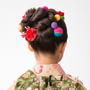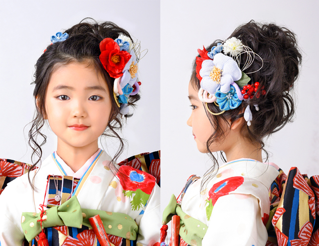 写真付き 7歳の七五三の髪型例ヘアセットする場所はどこ? 七五三写真のフォトスタジオ・写真館はらかんスタジオ。