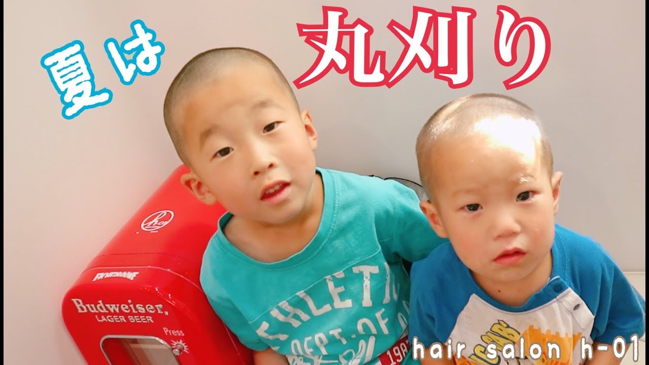 野球少年らしく兄弟で坊主りゅうのすけくん、じゅんのすけくんキッズカットした子供の髪型ギャラリ。