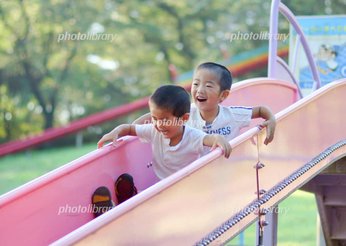 滑り台で遊ぶ坊主頭の子供 写真素材2106849- フォトライブラリ。