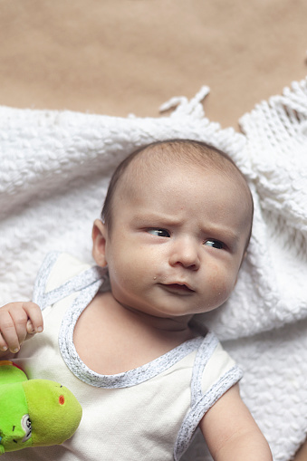 横たわっている2ヶ月の赤ちゃんの男の子2ヶ月の愛らしいかわいい新生児の男の子のクローズアップ怪しい顔をした赤ちゃん深刻な小さな子供子どもの情緒発達 -新生児のストックフォトや画像を多数ご用意 - iStock。