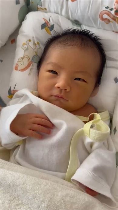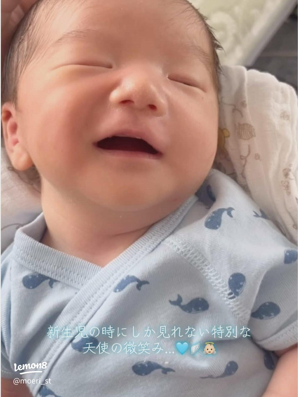 ♡ ▸▸▸ 生理的微笑 新生児微笑、天使の微笑とも言いますね ♡ 産まれてすぐの時に奇跡的に撮れたもの 𓆸𓈒𓂂1-2秒程度だから動画にしててたまたま映った 写真では撮るの難しいかも𓂅 この時期特有の生理的な笑いで 不随意運動として起こるもの。
