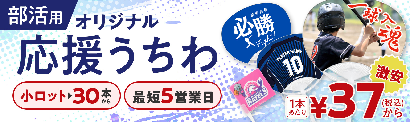 部活用のオリジナル応援うちわ作成小ロット30本から激安で名入れ可能。
