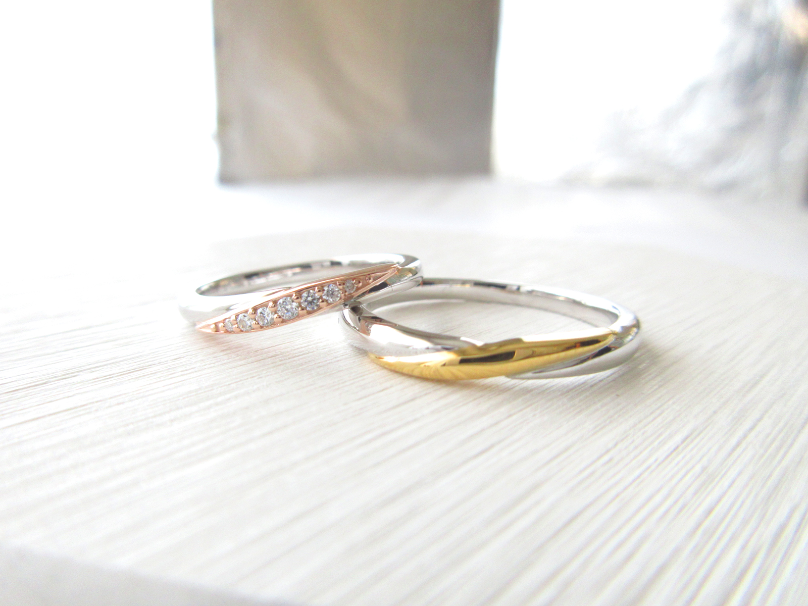 結婚指輪 同じデザインでもコンビ仕様や左右対称で表情が変わりますPressWalker。