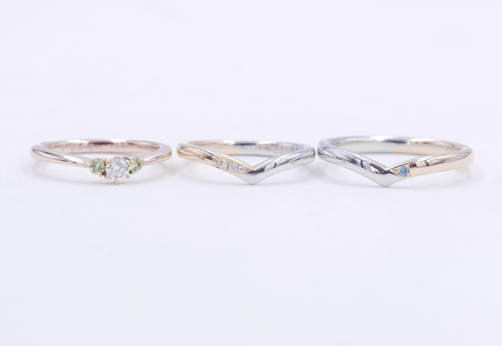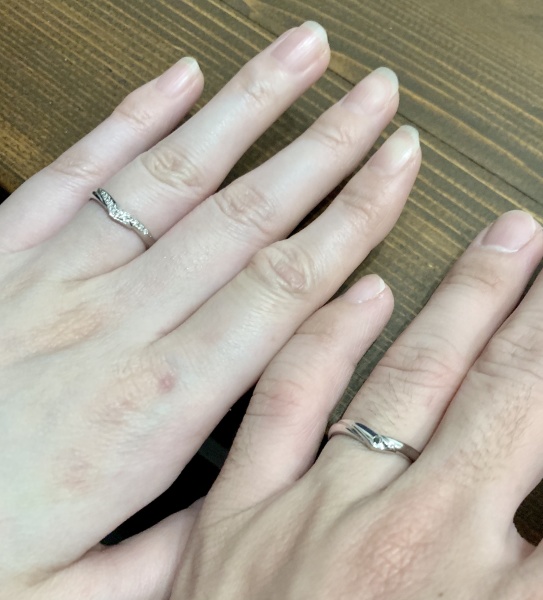 左右コンビのVライン結婚指輪ジュエリークルール。