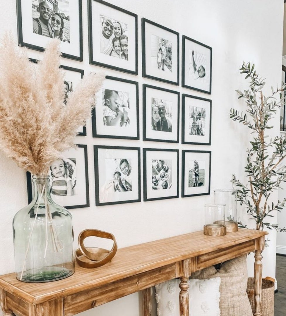 家族写真やアートを効果的に飾るユニークなフォトウォールのアイデア15。