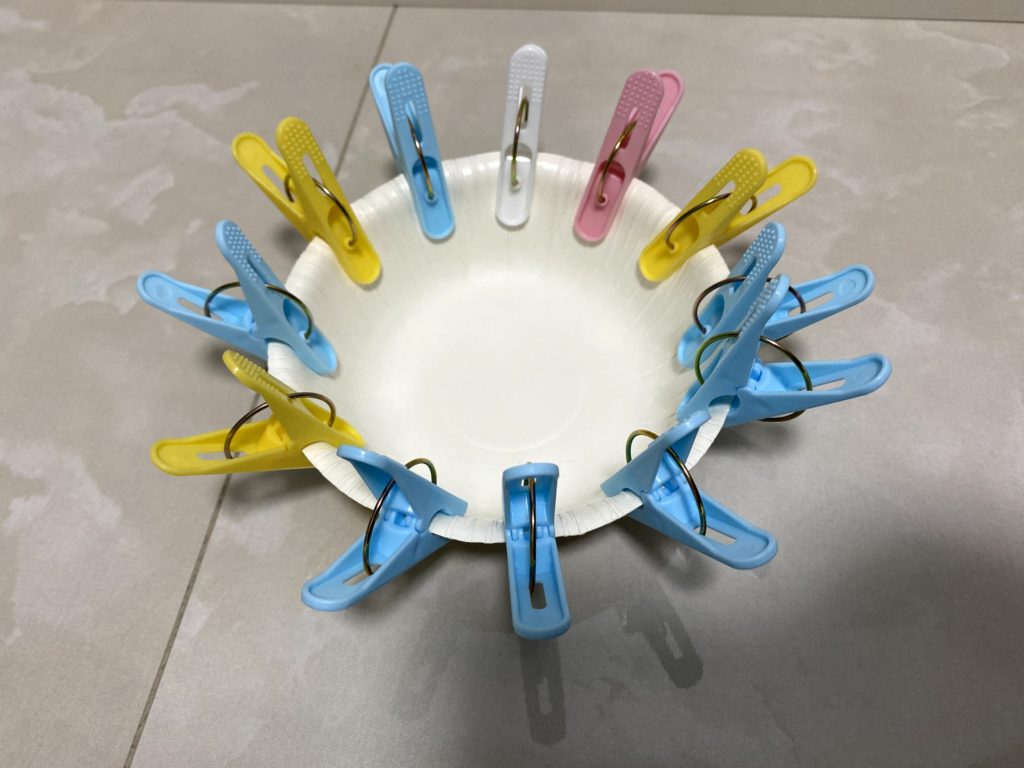 身近なもので指先遊び♪ 土台は100均で! 洗濯ばさみ遊び ‣ めかぶかあちゃんのどんどこ子育て。