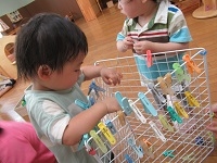洗濯バサミも立派なおもちゃ 2歳児 ゆきぐみ-白川グループ 社会福祉法人白川園、学校法人吉良学園、医療法人白川会 のホームページです。白川グループ 社会福祉法人白川園、学校法人吉良学園、医療法人白川会 のホームページです。