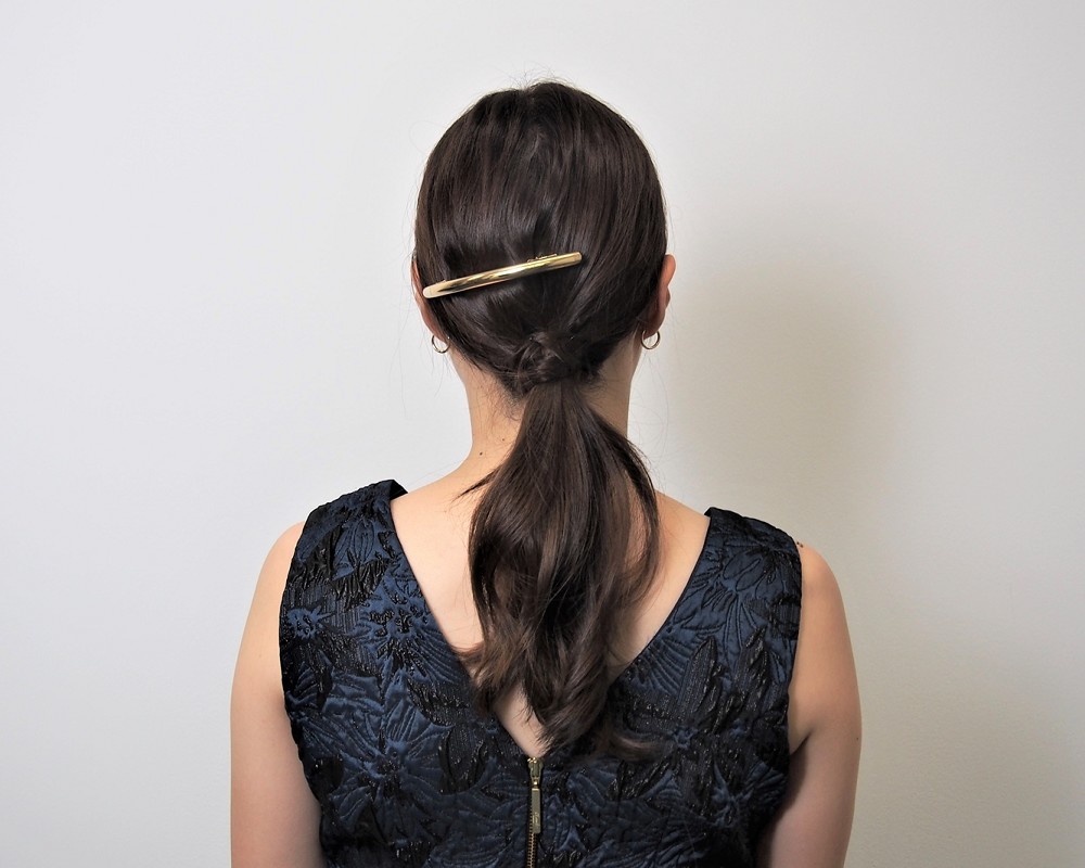 セルフヘアアレンジ ・パンツドレスにオススメ! シンプルポニーテールヘア。