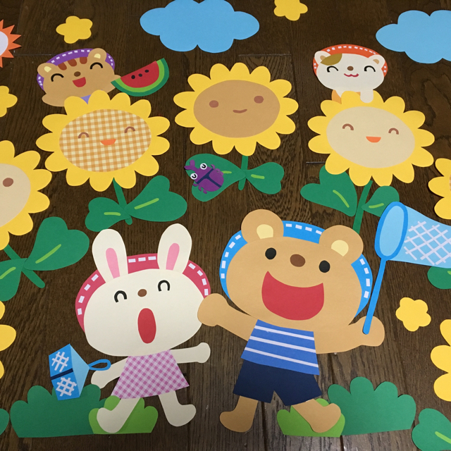 大きな壁面飾り☆ひまわり畑で虫とり☆くま うさぎ 夏 幼稚園保育園施設病院 太陽の通販 by kirakirapikapika's shopラクマ。