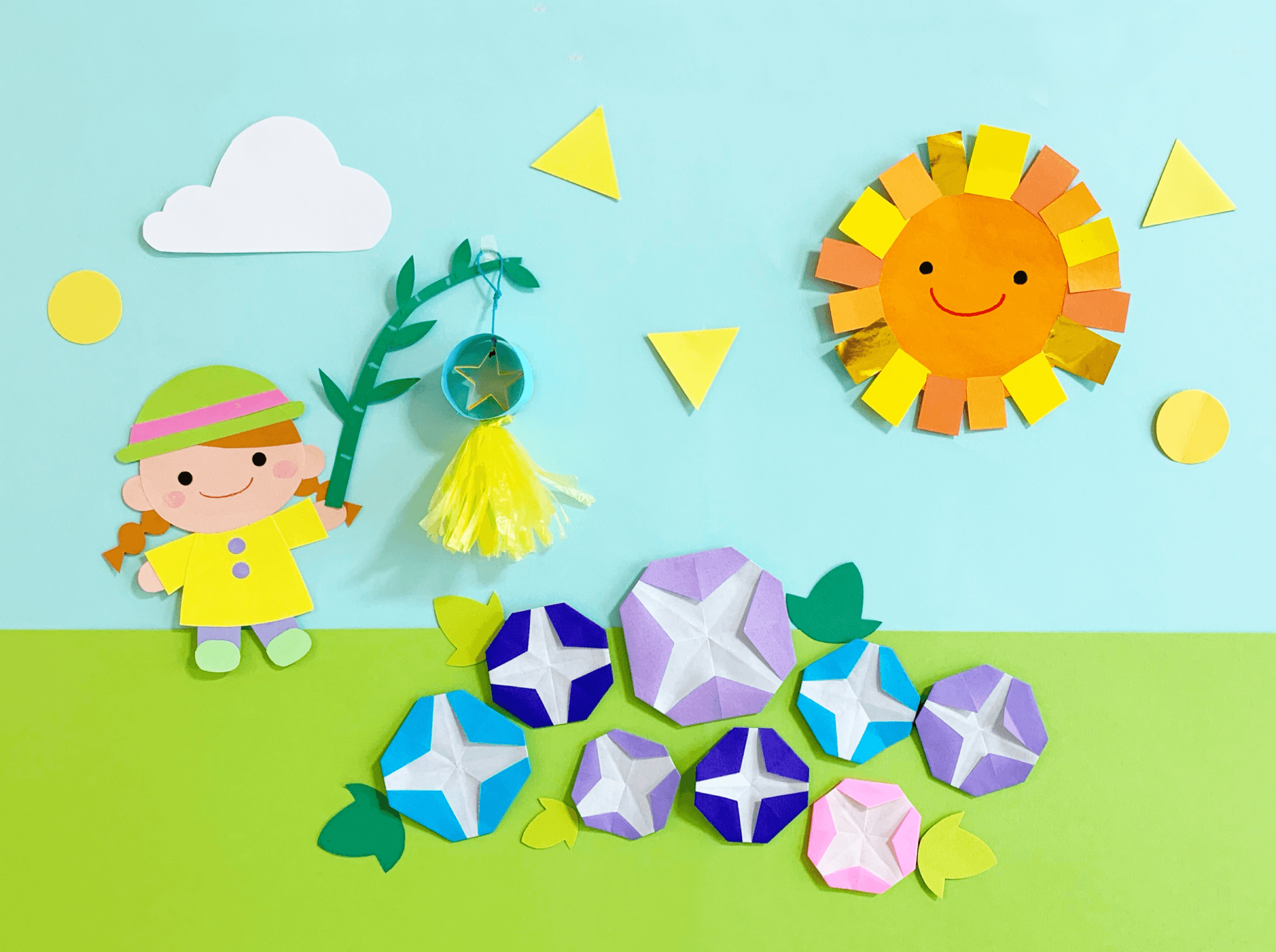夏の壁面アイデアをテーマ別に紹介!折り紙や型紙での作り方も かわいい・保育・海・子供・折り紙・ひまわり保育士くらぶ。