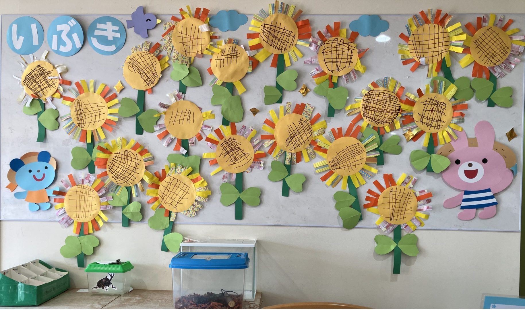 大きな壁面飾り☆ひまわり畑で虫とり☆くま うさぎ 夏 幼稚園保育園施設病院 太陽 ウォールステッカー・ウォールデコ kirakirapikapika通販 6059321Creema クリーマ。