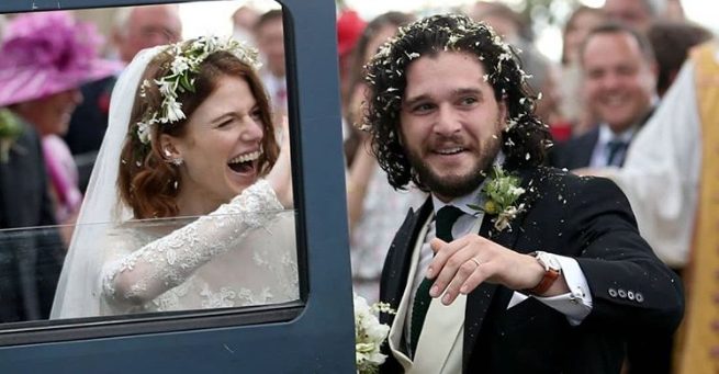 ゲーム・オブ・スローンズカップルキットハリントンとローズレスリーウェルカムファーストチャイルド。