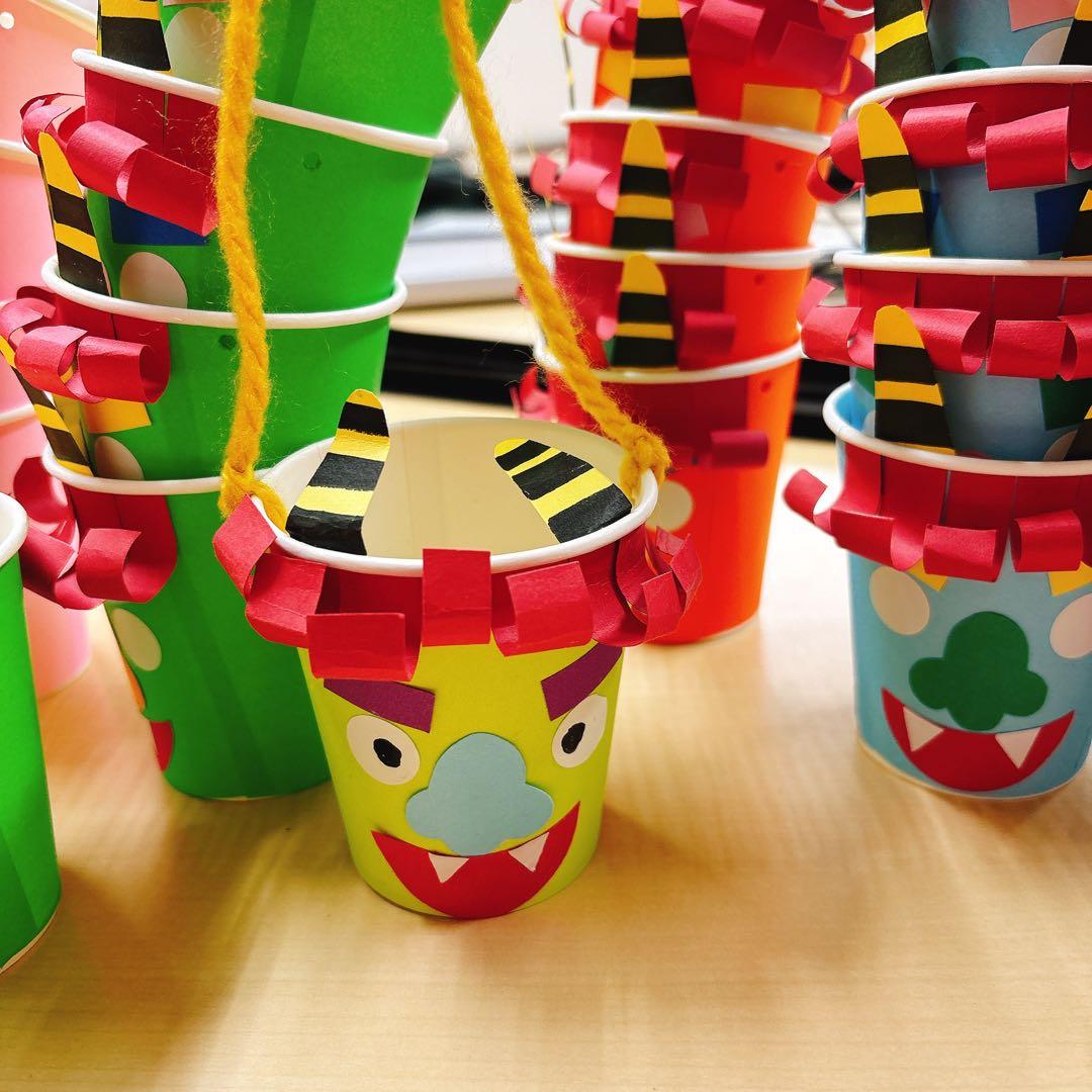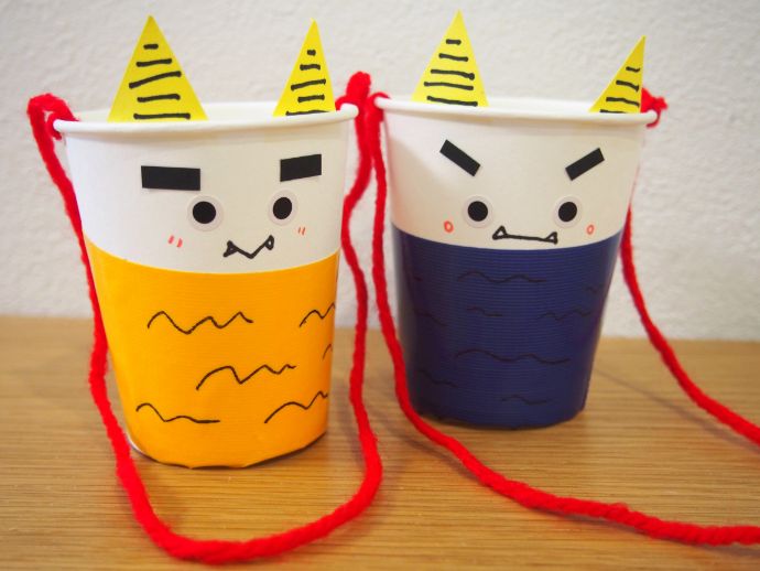 節分製作 鬼の豆入れ~紙コップ使用で準備簡単!2歳児3歳児4歳児おすすめ~。