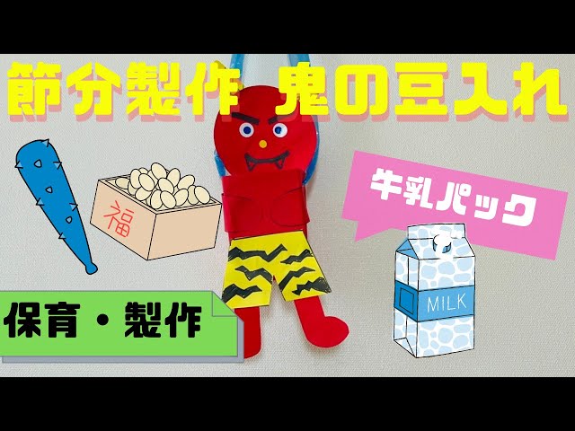 節分の豆入れ製作4.5歳児対象の牛乳パックを使った簡単な作り方 - YouTube。